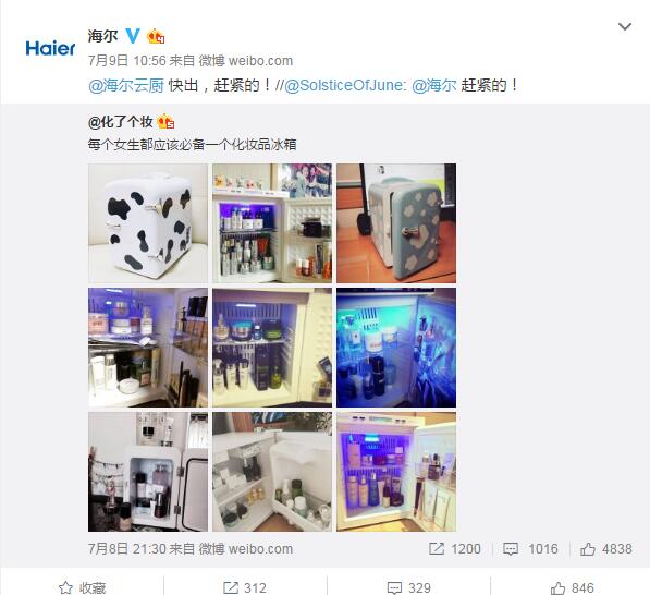 孫曉云女士梅花網(wǎng)傳播業(yè)大展上透露,運營著海爾官微的是一群平均年齡在1993年的90后,他們熱情又鬼點子多,領導給予了他們充分的信任,他們擁有著自主的決策權。當一個熱點出來了,他們反應熱點的能力非常迅速,想發(fā)的稿件從來不需要給領導審核,因此每一個新熱點出來,你都能第一時間看見海爾的身影。