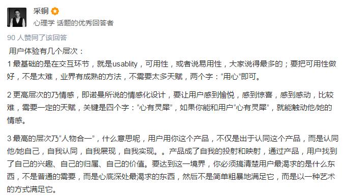 大神的這個解釋是不是很哲學?說了一大頓根本不知道在說什么。通俗的解釋是,產品用戶體驗做的好,就是我們用產品的時候感覺好,便利親切,一切以我們的角度來設計。